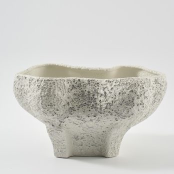 Salt crust finish –This handmade surface is alive with clustered bubbles, frozen mid-rise, creating a landscape of soft craters and luminous pockets of air.