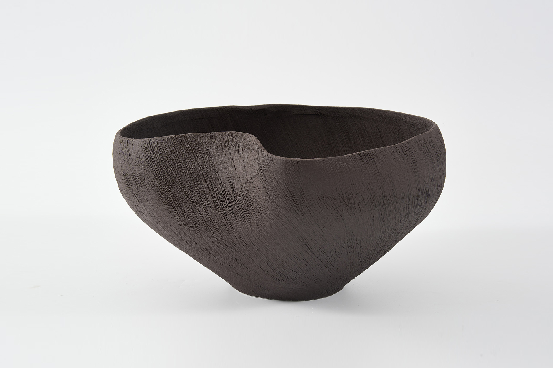 This bowl has a flowing, organic silhouette, as if it were gently expanding outward like a cosmic cloud. No harsh lines—its shape would seem almost in motion, with soft curves and asymmetry that hint at drifting gases.