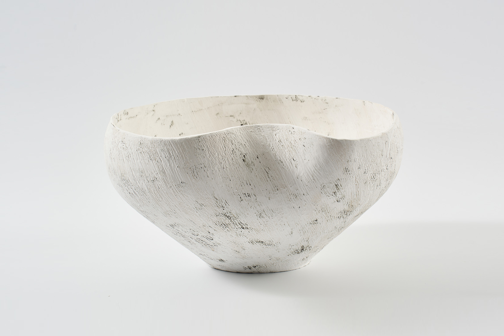 This bowl has a flowing, organic silhouette, as if it were gently expanding outward like a cosmic cloud. No harsh lines—its shape would seem almost in motion, with soft curves and asymmetry that hint at drifting gases.