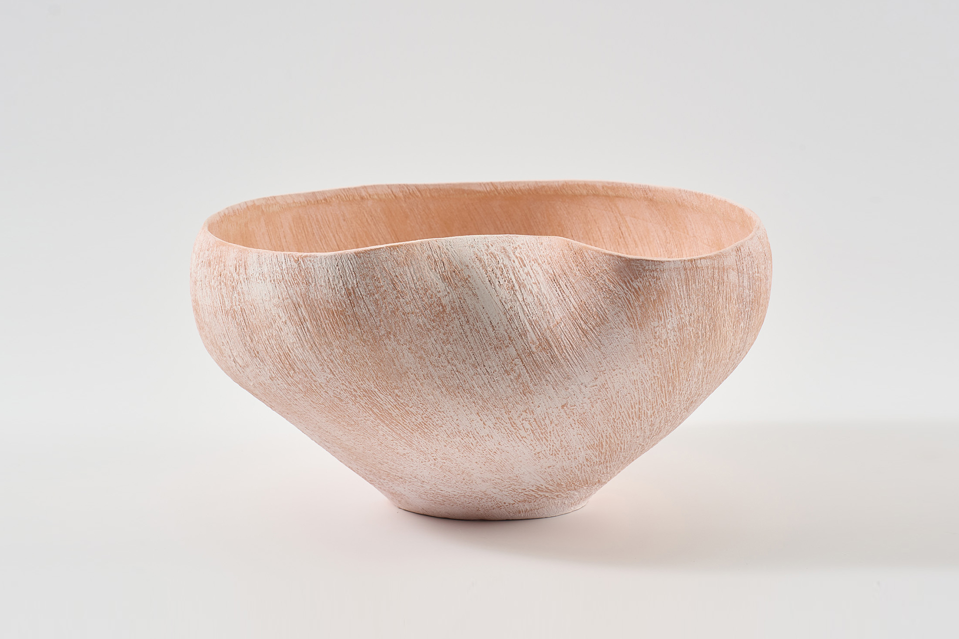 This bowl has a flowing, organic silhouette, as if it were gently expanding outward like a cosmic cloud. No harsh lines—its shape would seem almost in motion, with soft curves and asymmetry that hint at drifting gases.